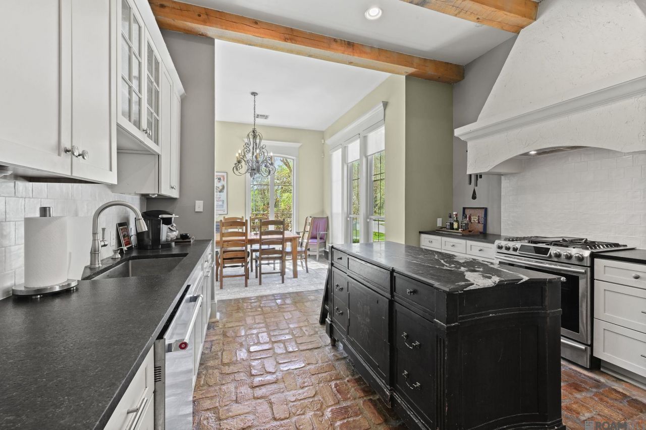 Nestled along one of the most coveted stretches of Woodland Ridge, this exceptional custom home sits directly across from the scenic lawns of Episcopal School and was originally designed and built by renowned artist Robert Rutgers. Rich in character and craftsmanship, the home reflects timeless French-inspired architecture with authentic details throughout. Inside, you'll find soaring 12-foot ceilings, wide plank Chicago brick floors in the main living areas, antique beams, and a stunning gas log fireplace that anchors the living space. The beautifully updated kitchen blends old-world charm with modern convenience, featuring slab granite countertops, beautiful cabinetry, and a gas range?perfect for entertaining or everyday living. The spacious and flexible floorplan includes five bedrooms and four full baths, with generous rooms, custom cabinetry, and unique architectural touches throughout. The primary suite is a true retreat with a copper-wrapped soaking tub, separate shower, and a furniture-style vanity. Step outside to a private backyard oasis featuring a recently added pool and hot tub, all overlooking a serene protected green space that provides both privacy and beautiful natural views. Professional landscaping, a flagstone walkway, French-style front walls, and charming outdoor areas further enhance the property's curb appeal. With its quality and style, plus the sought-after location facing Episcopal's iconic grounds, and many updates, this home offers a rare opportunity to own a truly distinctive property in one of the area's most desirable settings.