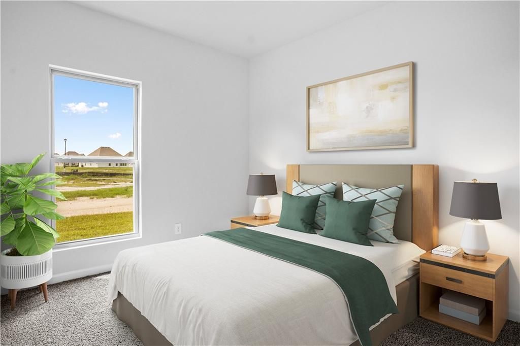 Welcome to the Hammond, one of our one-story floorplans featured in Lakeshore Villages, a new home community in Slidell, Louisiana. With 3 exteriors to choose from, the Hammond is sure to impress. Inside this 4-bedroom, 2-bathroom home, you'll find 1,612 square feet of enjoyable living. Once you walk into this home, you'll see two bedrooms along with the guest bathroom. Walking down the foyer, you'll see another bedroom down a short hallway, that houses the HVAC system and the linen closet on the other side. The kitchen offers shaker-style cabinets, gooseneck pulldown faucets in the kitchens. The chef in your family will also enjoy the stainless-steel Whirlpool appliances, gas stove, microwave hood, dishwasher, single basin undermount sink. and 3 cm granite throughout. The kitchen also houses a large corner pantry, and the separate laundry room is located on the other side, creating easy access to everything. The dining room is adjacent to the kitchen, and the living room is situated nearby. This smart layout ensures that anyone can always be part of the action, regardless of their location. Each bedroom is equipped with cozy carpeting and a convenient closet. Whether you need a space for entertainment, storage, hosting guests, relaxation, or fitness activities, you can count on feeling comfortable and content. The primary bedroom is in the rear of the home and has its own en suite. The primary bathroom features a double vanity with a tub/shower combo, large walk-in closet, separate linen closet, and a separate water closet. Get in touch with us now and schedule a tour of the Hammond today! NOTE**LOT IS VERY IRREGULAR. DIMENSIONS ARE:42.97X44.55X49.74 X 116X45.85X118.99